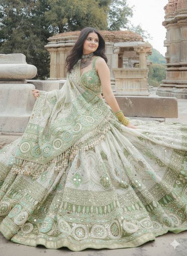 🌿 Boho Touch With Printed or Mirror Lehengas